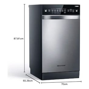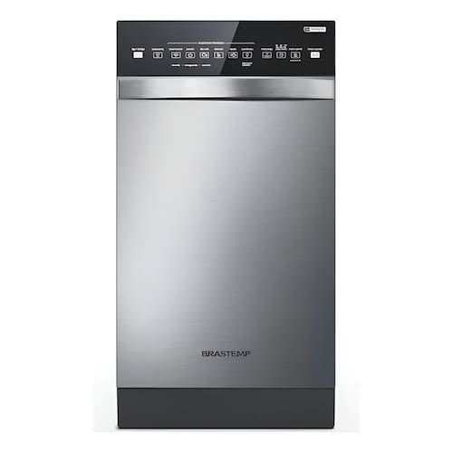 A Lava Loucas Brastemp BLF10BR e projetada para se encaixar perfeitamente em sua cozinha. Com dimensoes de 84,5 cm de altura, 44,8 cm de largura e 63,7 cm de profundidade, pode ser acomodada tanto em bancadas quanto em nichos. Seu acabamento em inox traz um toque de sofisticacao e modernidade ao ambiente. Alem disso, a maquina pesa 37,50 Kg e vem com pes, oferecendo estabilidade e seguranca durante o uso.