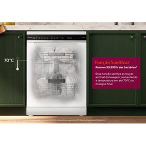 Capacidade para 15 serviços, Smart Sensor, Função Sanitizar, Função Acquaspray, Cestos ajustáveis, Painel Digital.Programas de lavagem