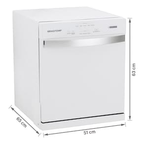 Capacidade para 8 serviços, modelo compacto, ideal para famílias menores ou pouco espaço. Dimensões: 63x51x65 cm. Cor branca. Tensão 127V. Pés de plástico com 4 ajustáveis. Garantia de 12 meses.Programas de lavagem