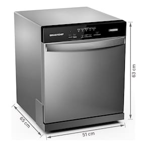Compacta, moderna e fácil de instalar em bancada ou nicho. Remove sujeiras difíceis com jatos de água quente e alta pressão. Economiza até 5x mais água do que a lavagem na pia.Programas de lavagem
