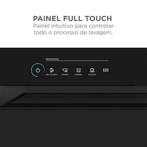 Painel Full Touch: Intuitivo que permite, com apenas um toque, selecionar ciclos, ajustar funções e controlar todo o processo de lavagem.
