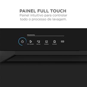 Painel Full Touch, Função Compras, Secagem Extra, Programa Pré-Lavagem, Programa Intenso (higienização a 70°C), Programa Rápido (30 minutos), Programa Eco, 8 ServiçosProgramas de lavagem