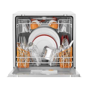 Compacta e eficiente! 8 serviços lavam até 91 peças. Cada serviço representa um kit de utensílios contendo prato fundo, raso e sobremesa, copo, xícara e pires, colher de sopa, sobremesa e chá, garfo e faca, na BLF08 cabem 8 kits de cada item, além de bowl, travessa e panela.