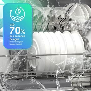 Eficiência máxima, consumo reduzido: A tecnologia HQ garante até 70% de economia de água em comparação à lavagem manual, além de um baixo consumo de energia, tornando sua rotina mais sustentável e econômica.