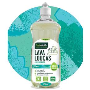 Sua fórmula é de base vegetal e possui Aloe Vera certificada na composição, garantindo propriedades hidratantes que não ressecam as mãos. Além disso, é hipoalergênico e não causa reações alérgicas. O Lava Louças Biowash é Biodegradável e a embalagem é sustentável, feita de material PET reciclável. Produzido com óleos vegetais, possui suave fragrância de Menta.