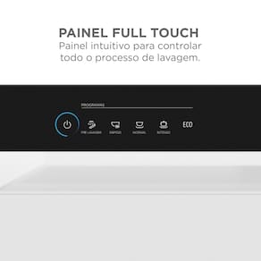 Seu grande diferencial é o Painel Full Touch com display LED branco, onde você controla funções exclusivas como a Função Compras, ideal para higienizar embalagens e alimentos antes de guardar. Para as sujeiras mais pesadas, o Programa Intenso utiliza água a 70°C, garantindo a esterilização total das suas louças, enquanto a Secagem Extra entrega utensílios prontos para o armário, sem manchas de água.