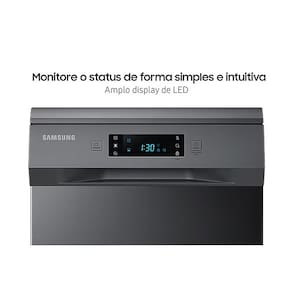 ESPECIFICAÇÕES TÉCNICAS Marca: Samsung Modelo: DW50C6070F Cor: Preto Tipo de instalação: De piso Capacidade: 10 Serviços Consumo de água (L/Ciclo): 12.9 Display: Externo Tamanho: Slim Resistente a marca de dedos: Sim Sensor para vazamento de água: Sim Iluminação Interna: LED Material tubo: Aço Inoxidável Travar porta: Sim Prateleira para copos: Sim Ajuste de altura: Manual Tensão (V): 127 Potência Total (W): 1250 Freq. (Hz): 60 Dimensões do Produto (AxLxP): 44.9 x 60.0 x 84.5 cm Dimensões da Embalagem (AxLxP): 51.0 x 65.0 x 88.5 cm Peso Líquido: 39 Kg Peso Bruto: 44.5 Kg Garantia: 12 Meses