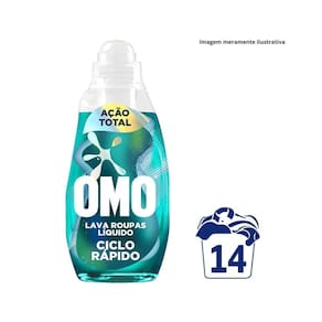 Lava roupas liquido omo ciclo rapido 750ml total Lava roupas liquido omo ciclo rapido 750ml total Chegou o revolucionário lava roupas líquido omo ação total para lavar suas roupas mesmo em ciclos rápidos. Esse lava roupas líquido limpa de forma eficaz as sujeiras enquanto perfuma com sua fragrância intensa. Possui uma ação rápida na eliminação das sujeiras, limpa em até 15 minutos, e um perfume extraordinário que proporciona a sensação de frescor de suas peças. A fórmula inovadora e poderosa do lava roupas líquido omo ação total limpa, perfuma e protege os tecidos. Omo lava roupas líquido é poderoso, 750 ml do produto rendem 14 lavagens e 1,4l rendem 28 lavagens. Menos de uma tampa basta para um ciclo rápido. Apesar deste lava roupas ter sido concebido para ciclo rápido, pode ser em qualquer tipo de ciclo, proporcionando poder de limpeza e fragrância duradoura.