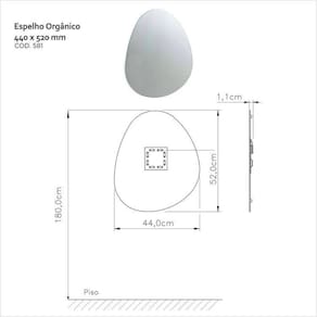 Transforme seu ambiente com um conjunto que une design moderno, praticidade e qualidade superior. O Espelho Orgânico Lapidado de 3mm oferece um reflexo nítido e duradouro, podendo ser instalado em quatro direções diferentes, adaptando-se perfeitamente ao seu estilo. O lavabo com tampo em vidro lapidado incolor com cuba de apoio moldada garante resistência e sofisticação, enquanto o perfil de alumínio com pintura eletrostática silver e a estrutura tubular com porta-toalha agregam durabilidade e funcionalidade. A válvula cromada exclusiva e a capa de sifão em alumínio com design moderno completam o conjunto com acabamento impecável e instalação fácil, valorizando qualquer ambiente. Possui Portas: Não Altura do Conjunto: 52 cm Ambiente: null Ambiente Principal: Banheiro Cor: Incolor Informação Complementar: 1x Espelho Decorativo Orgânico 44cm x 52cm Cromado Largura: 44 cm Altura: 52 cm Peso: 1,86 kg Profundidade: 0,3 cm Necessita Montagem: Sim