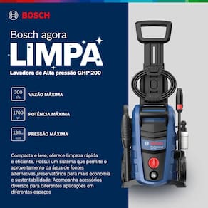 A Lavadora de Alta Pressao Bosch GHP 200 e a solucao perfeita para a limpeza de fachadas, quintais, calcadas, veiculos, moveis de jardim e ate mesmo para a remocao de residuos em pequenas construcoes. Sua versatilidade a torna indispensavel para quem busca praticidade e resultados impecaveis em diferentes ambientes e aplicacoes.