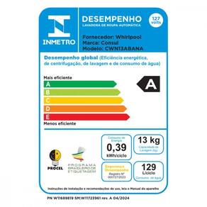 Consumo: 0,39 KWh/ciclo