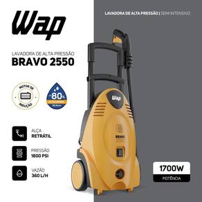 A lavadora de alta pressão WAP Bravo 2550 é a melhor opção para limpar sujeiras pesadas e profundas com rapidez e agilidade, economizando tempo e até 80% de água se comparada à mangueira comum. Com motor de indução, bico turbo, potência de 1700W e pressão máxima de 1800 PSI é o equipamento perfeito para a remoção de níveis incrustados de sujeira nos mais diversos tipos de pisos e superfícies.
