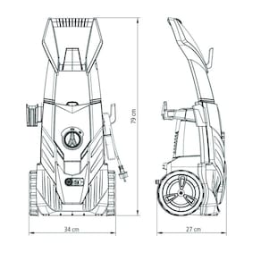 Acompanha: pistola de alta pressão com trava, ponteira turbo, ponteira para regular o jato de saída de água, mangueira de alta pressão, filtro para sucção de água, dispositivo interno para aplicação de sabão, engate rápido e manual de instruções.