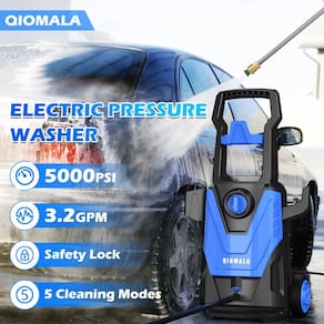 - Desempenho de alta pressão: A lavadora de alta pressão elétrica QIOMALA é incrivelmente poderosa, com pressão de 5000 PSI e fluxo de 3,2 GPM. Essa combinação de alta pressão pode facilmente remover sujeira, fuligem e lama persistentes de várias superfícies. Quer se trate de manchas endurecidas - na sujeira das rodas do seu carro ou nas manchas profundas do seu pátio - esta lavadora realiza o trabalho com eficiência, economizando tempo e esforço