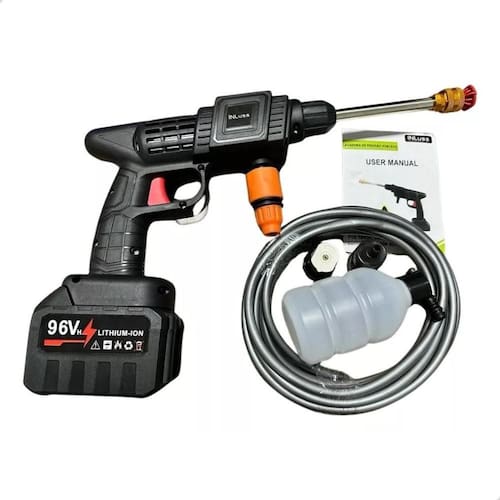Vantagens: - Versatilidade de Uso: Com uma lavadora de alta pressão portátil, você pode limpar uma variedade de superfícies, desde carros e calçadas até móveis de jardim. Sua versatilidade a torna ideal para múltiplas tarefas de limpeza. - Economia de Tempo e Esforço: Essas lavadoras facilitam o trabalho de remoção de sujeira e manchas difíceis, economizando tempo e esforço consideráveis. A alta pressão elimina a necessidade de esfregar manualmente, proporcionando resultados eficazes de limpeza em menos tempo. - Portabilidade e Armazenamento Conveniente: As lavadoras de alta pressão portáteis são compactas e fáceis de transportar. Além disso, seu design permite armazená-las sem ocupar muito espaço, tornando a limpeza acessível e conveniente em qualquer lugar. Especificações: - Material: Plástico ABS + componentes eletrônicos bocal de alta pressão em metal - Cor: Preto - Tensão da bateria: 96V - Capacidade da bateria: 20.000mah - Potência: 400W - Tensão do carregador: 110V/220V bivolt 50Hz/60Hz - Tempo aproximado para carga: 3 horas - Tempo aproximado de uso: 80-120 minutos - Tamanho da mangueira: 5 metros - Fluxo de água: 4 litros por minuto - Pico : 35 Bar - Alcance: 12 metros Conteúdo da embalagem: - 01 Lavadora de Alta Pressão - 01 Maleta de Transporte - 01 Bico de alta pressão - 01 Bateria recarregável - 01 Carregador - 01 Mangueira - 01 Filtro/Dispenser - 02 Bocais Marca: Não Informado
