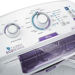Lava até 8,5kg de roupas. Lave mais em menos tempo