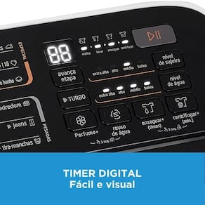 Com a função Turbo, o Sistema Anti-impacto com fechamento suave da tampa e uma de 13 programas e 10 funções adicionais, esta lavadora foi projetada para facilitar o seu dia a dia, proporcionando eficiência e conveniência incomparáveis.