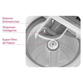 dispenser inteligente garante melhor distribuição do sabão e do amaciante, contribuindo para uma lavagem mais eficiente.