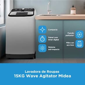 Transforme a sua rotina de lavanderia com a Lavadora de Roupas 15kg Midea Wave Agitator , uma verdadeira revolução em eficiência e economia! Com o menor consumo de água da categoria, essa lavadora oferece o equilíbrio perfeito entre desempenho poderoso e responsabilidade ambiental. Surpreenda-se com a incrível capacidade desta máquina, que, mesmo sendo a mais compacta da categoria, oferece uma solução eficiente para lares modernos, unindo praticidade e desempenho em um único equipamento. O design inteligente oferece o consumo consciente e o controle total na ponta dos seus dedos, graças ao painel com Timer Digital. Além disso, o agitador anatômico Wave Agitator, o Filtro de Fiapos em Aço Inox, a Função Perfume+ e o Sistema Power Mix Dispenser trabalham em harmonia para garantir que suas roupas saiam impecáveis a cada lavagem. Com a função Turbo, o Sistema Anti-impacto com fechamento suave da tampa e uma ampla variedade de 13 programas e 10 funções adicionais, esta lavadora foi projetada para facilitar o seu dia a dia, proporcionando eficiência e conveniência incomparáveis.