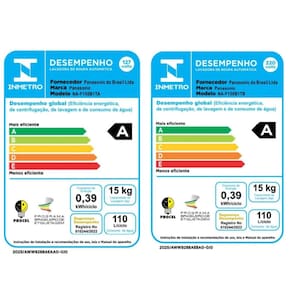 Lavadora de Roupas Panasonic NAF150 15KG, oferece alta capacidade e eficiencia com agua fria, 8 programas e sistema ciclone, garantindo otima lavagem -0,93- com baixo consumo de energia -0,39 kWh/ciclo-. Possui painel com dial, Avanca Etapa, Espuma Ativa, sensor de carga, 7 niveis de agua, cesto inox, filtro de fiapos, SmartSense, programa Vanish com ate 20 mais desempenho e centrifugacao de 700 RPM.