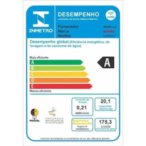 Consumo de energia ciclo de lavagem normal: 0,21 kWh