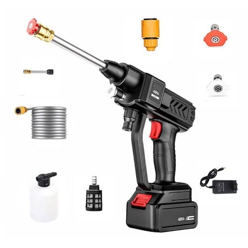 Lavadora ferramenta de aplicação de alta pressão pra carro sem fio portátil bateria 48v com bicos com fonte 12v com bateria 48v com mangueira