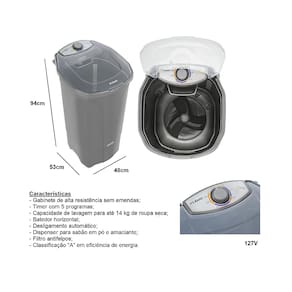 Capacidade de Lavagem: 14Kg (roupa seca)