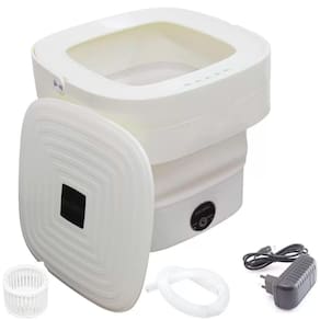 Lavadora mini portátil 6,5l solução compacta para lavagem rápida design dobrável: a máquina de lavar portátil dobrável é pequena e conveniente para guardar embaixo, no banheiro ou em qualquer lugar, como dormitórios, apartamentos, trailers, camping, viagens e lavanderia. Material durável: a máquina de lavar dobrável é feita de material de alta resina, que pode ser utilizado por muito tempo. Vários modos: motor potente, 6,5 l de grande capacidade, 3 modos de limpeza: limpeza rápida, limpeza padrão, varredura; cesto de água para secagem roupas. Uso versátil: esta pequena máquina de lavar pode lavar itens pequenos, como roupas íntimas, roupas de bebê,
