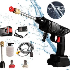 Lavadora portátil com detergente para limpeza geral Atenção: recomendamos que o primeiro uso seja ligado diretamente na torneira para remover o ar da máquina. Após isso pode utilizar no balde normalmente. Antes de utilizar o produto, carregar por 12 horas em uma carga completa Transforme a limpeza em uma tarefa simples e sem esforço com a nossa lavadora jato portátil de alta pressão, agora disponível para você seja em casa, no jardim, no carro ou em qualquer lugar que precise de uma limpeza poderosa, esta lavadora portátil é sua melhor aliada. Características principais: Alta pressão onde você precisa: ajuste a intensidade conforme a necessidade da limpeza, de sujeiras leves a resistentes. Portátil e recarregável: equipada com duas baterias recarregáveis para total liberdade de movimento. Acessórios completos: bico extensor, dispenser de sabão, mangueira e mais para uma limpeza eficaz. Fácil de transportar e armazenar: guardada em uma maleta resistente e prática. Ecológica e econômica: utilize apenas a quantidade necessária de água, evitando desperdícios. Conteúdo do pacote: 1 lava jato portátil de alta pressão 1 filtro 2 bicos alta pressão/spray 1 bico extensor 1 dispenser de sabão 1 mangueira 1 fonte de carregamento 2 baterias 1 maleta resistente Ficha técnica: Consumo: 4l por min Tensão do carregador: 110v/220v bivolt Bateria: 6000mah Tempo de recarga: 2-3 horas Tempo de uso: 1 - 1:30 horas Funcionalidades: 3 Bocal de alta pressão Níveis : alto-médio-baixo Material: plástico com circuitos elétricos Cuidados 1- quanto tempo dura a bateria R: até 1 hora. 2- esse modelo vem com os acessórios R: sim, com todos os descritos na descrição do produto. 3- pode usar com a mangueira em um balde com água R: sim, ou ligada na torneira ou em um balde com água. 4- a carga dela é bivolt R: sim, o carregado pode usar no 110v ou 220v. 5- a bateria vem junto e qual a amperagem do carregador R: sim, tensão do carregador: 110v/220v 50 hz/60hz. Amperagem 2000 mah. 6- vocês têm bateria separado R: por enquanto não temos. Não utilizar sem água Manter longe do alcance de crianças e animais Evitar contato com o corpo quando utilizado com altas pressões Não desmontar o produto Verificar o encaixe correto da bateria Evitar quedas do produto Verificar se o produto está devidamente carregado Marca: Não Informado Ean: 7905620069105