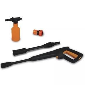Potência do Motor: 1300 WattsVazão: 6,5 L/min.Pressão Máxima: 1.450 libras 100 BAR Pressão Nominal: 70 BAREntrada de água pressão máxima: 0,2 Mpa / 2 BAR Temperatura máxima de admissão: 50ºCTipo de proteção: IP25Tipo de isolação: Dupla isolação.Itens Inclusos:1 engate rápido1 pistola1 lança bico regulável1 mangueira de alta pressão1 recipiente para detergente