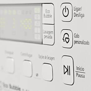 Air Wash é o exclusivo motor de transmissão silenciosa que funciona sem correias ou engrenagens, reduzindo a vibração e tornando a lavadora mais silenciosa e durável. O painel de controle do display gráfico digital é claro e fácil de usar, reduzindo dúvidas e dificuldades.