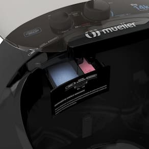Possui dispenser para sabão em pó ou líquido e amaciante com medidor e seletor.