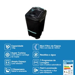 custo-benefício. Com capacidade para lavar até 10kg de roupas, ela oferece 7 programas de lavagem com 2 molhos