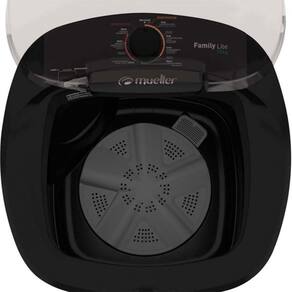 Lavadora Semiautomática Mueller 10kg Family Lite Preto 220V Lavadora Semiautomatica Mueller 10kg Family Lite. Caracteristicas: Material: Polipropileno Capacidade de Lavagem (roupa seca): 10Kg Capacidade - quantos litros cabem no interior do produto: 96 Potencia: 330W Filtro para Fiapos: Sim, em todos os niveis de agua Dispenser para Sabao: Sim Dispenser para Amaciante: Sim Dispenser para Alvejante: Nao Acompanha Mangueira de Entrada de Agua: Sim Eficiencia global de lavagem: A Consumo de energia (kW/h): 0,08 Lava Edredons: Sim Reutilizacao de Agua: Sim Aquecimento de Agua: Nao Molho: Sim Esterelizacao: Nao Programas de Lavagem (Ciclos): 6 programas de lavagens Centrifugacao: Nao Nao possui programa de centrifugacao Tipo de Abertura: Superior (top load) Cesto removivel: Nao Turbilhonador removivel: Sim Saida de Agua: Manual Entrada de agua: Manual Consumo de Agua ? POR CICLO*: 133 Niveis de Agua: Nao Sistema de Lavagem: Turbilhonamento