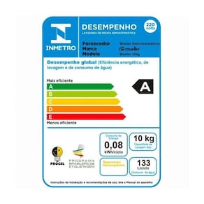 - Consumo de energia - ciclo de lavagem normal: 0,08 kW/h