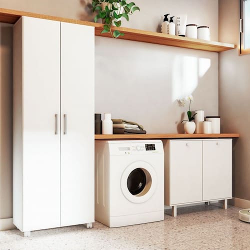 O(a) Lavanderia Completa 4 Portas 4 Prateleiras Branco Bks - Brv é produzido em MDP na escala de brilho Fosco, e possui um grau de dificuldade de montagem: Médio.