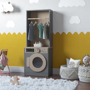 A Lavanderia Infantil Helena Máquina de Lavar com Cabideiro MDF é a opção perfeita para as crianças que adoram brincar de organizar. A máquina de lavar e o cabideiro são ideais para estimular a imaginação e ensinar as crianças sobre as tarefas cotidianas de forma lúdica.