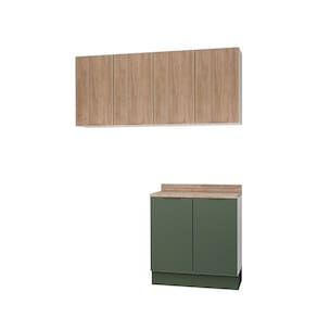 Lavanderia Modulada 3 Peças 2 Armários Aéreos 1 Balcão 2 Portas Ipanema Cabecasa Madeiramadeira Verde Folha/Acácia