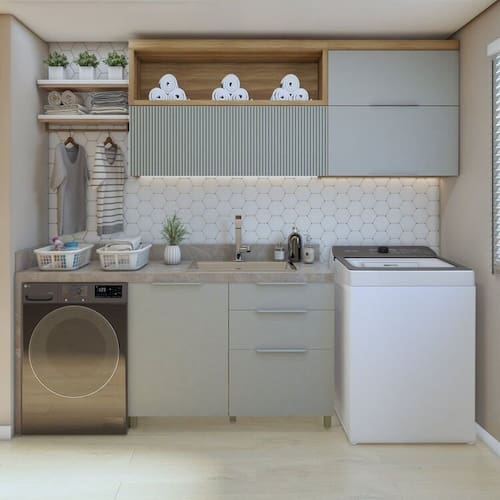 Renove sua lavanderia com o Kit 2 Armários Aéreos e 1 Balcão de 1 Porta da Nesher Móveis, feito 100% em MDF de alta qualidade. Com esse conjunto, você ganha mais praticidade e organização no dia a dia, aproveitando ao máximo o espaço disponível. Os armários aéreos são perfeitos para armazenar itens essenciais de forma segura, enquanto o balcão oferece um amplo espaço para utensílios e produtos de limpeza. O design moderno combina com qualquer estilo de decoração, trazendo funcionalidade e elegância para o ambiente. Durável e resistente, esse kit é ideal para quem busca otimizar o espaço com muito bom gosto. Transforme sua área de serviço em um local mais bonito e organizado com Nesher Móveis, sua melhor opção em qualidade e estilo! Possui Portas: Sim Acabamento: Impressão Possui Rodízio: Não Altura do Conjunto: 91 cm Ambiente: null Ambiente Principal: Área de Serviço Cor: Marrom/Verde Informação Complementar: 1x Armário Aéreo 1 Porta Basculante Ripado Marquesa 120Cm 100% Mdf Marrom/Verde Largura: 120 cm Altura: 82 cm Peso: 27,36 kg Profundidade: 32 cm Necessita Montagem: Sim