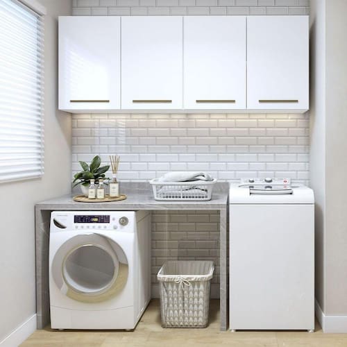 Quais sao os melhores armarios para lavanderia pequena? Os melhores modelos sao armarios com prateleiras que otimizam espaco e ajudam a organizar produtos e utensilios de forma pratica.