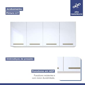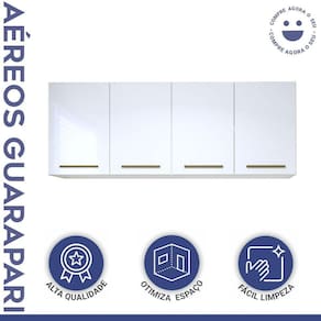 Caracteristicas: Modelo: Guarapari Marca: Kaiki Moveis Material Principal: MDP Material da Porta: MDF Acabamento: Pintura Escala de Brilho: Fosco Acabamento da Porta: Pintura Escala de Brilho da Porta: Fosco Material do Puxador da Porta: MDF Tipo de Dobradica/Corredica da Porta: Metalica Acabamento da Prateleira: Pintura Escala de Brilho da Prateleira: Fosco Material da Prateleira: MDP Possui Portas: 04 Possui Prateleiras: 02 Caracteristicas Quantidade de Prateleiras: 02 Prateleiras Quantidade do Produto: 2 Tipo de Porta: Bater Tipo de Armario Multiuso: Aereo Suporta Ate (kg): 40 kg Possui Prateleiras: Sim Possui Pes: Nao Possui Gavetas: Nao Peso Maximo por Prateleira: 10 kg Estilo: Moderno Sapatas Niveladoras: Nao Tipo de Puxador da Porta: Externo Possui Espelhos: Nao Ambiente Principal: Area de Servico Necessita Montagem: Sim Complexidade da Montagem: Alta: deve ser montado por um montador especializado Sistema de Montagem: Parafusos e Cavilhas. Recomendacoes de Uso, Manutencao e Limpeza: Limpar com pano macio e levemente umedecido. Nao utilizar solventes a base e de inflamaveis. Nao utilizar produtos abrasivos.