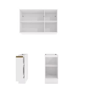 Acabamento: Pintura Brilho | Cor: Branco | Corrediças: Telescópicas | Dobradiça: Com Amortecimento | Garantia: 3 meses para defeito de fabricação | Gavetas: Internas | Matéria-prima: MDF | Peso suportado por cada prateleira: 7 kg | Peso suportado por gaveta: 6 kg | Puxadores: Alumínio / Metálicos | Quantidade de gavetas: 2 | Quantidade de portas: 1 / 3 | Quantidade de prateleiras: 1 / 2 | Sistema de montagem: Parafuso Philips | Tipo de porta: Bater