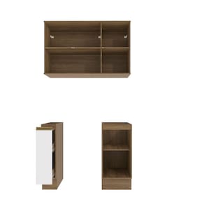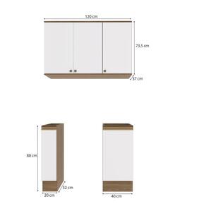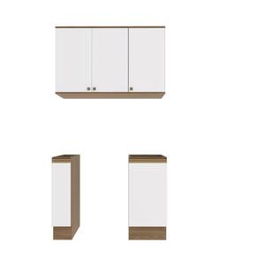 Acabamento: Pintura Brilho / Pintura Touch | Cor: Nogueira/Branco | Corrediças: Telescópicas | Dobradiça: Com Amortecimento | Garantia: 3 meses para defeito de fabricação | Gavetas: Internas | Matéria-prima: MDF | Peso suportado por cada prateleira: 7 kg | Peso suportado por gaveta: 6 kg | Puxadores: Alumínio / Metálicos | Quantidade de gavetas: 2 | Quantidade de portas: 1 / 3 | Quantidade de prateleiras: 1 / 2 | Sistema de montagem: Parafuso Philips | Tipo de porta: Bater