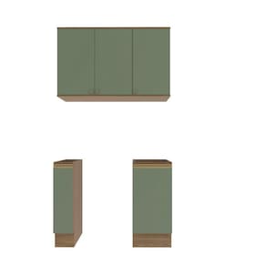 Acabamento: Pintura Fosco / Pintura Touch | Cor: Nogueira/Verde Oliva | Corrediças: Telescópicas | Dobradiça: Com Amortecimento | Garantia: 3 meses para defeito de fabricação | Gavetas: Internas | Matéria-prima: MDF | Peso suportado por cada prateleira: 7 kg | Peso suportado por gaveta: 6 kg | Puxadores: Alumínio / Metálicos | Quantidade de gavetas: 2 | Quantidade de portas: 1 / 3 | Quantidade de prateleiras: 1 / 2 | Sistema de montagem: Parafuso Philips | Tipo de porta: Bater