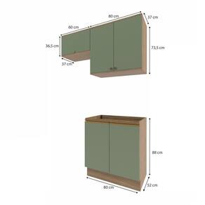 Acabamento: Pintura Fosco / Pintura Touch | Cor: Nogueira/Verde Oliva | Dobradiça: Com Amortecimento / Sem Amortecimento | Garantia: 3 meses para defeito de fabricação | Matéria-prima: MDF | Peso suportado por cada prateleira: 7 kg | Puxadores: Alumínio / Metálicos | Quantidade de portas: 1 / 2 | Quantidade de prateleiras: 1 | Sistema de montagem: Parafuso Philips | Tipo de porta: Bater