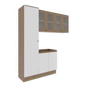 Acabamento: Pintura Brilho / Pintura Touch | Cor: Nogueira/Branco | Dobradiça: Com Amortecimento | Garantia: 3 meses para defeito de fabricação | Matéria-prima: MDF / MDF/ Vidro | Peso suportado por cada prateleira: 7 kg | Puxadores: Alumínio / Metálicos | Quantidade de portas: 1 / 2 | Quantidade de prateleiras: 1 / 5 | Sistema de montagem: Parafuso Philips | Tipo de porta: Bater
