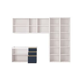 Acabamento: Pintura Brilho / Pintura Fosco | Cor: Branco/Azul Profundo | Corrediças: Telescópicas | Dobradiça: Com Amortecimento | Garantia: 3 meses para defeito de fabricação | Matéria-prima: MDF | Peso suportado por cada gaveta: 6 Kg | Peso suportado por cada prateleira: 7 kg | Puxadores: Metálicos / Puxadores de Metal e de Alumínio | Quantidade de gavetas: 3 | Quantidade de portas: 1 / 3 | Quantidade de prateleiras: 1 / 2 / 5 | Sistema de montagem: Parafuso Philips | Tipo de porta: Bater