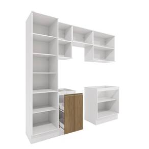 Acabamento: Pintura Brilho / Pintura Touch | Cor: Branco/Nogueira | Corrediças: Telescópicas | Dobradiça: Com Amortecimento / Sem Amortecimento | Garantia: 3 meses para defeito de fabricação | Gavetas: Internas | Matéria-prima: MDF | Peso suportado por cada prateleira: 7 kg | Peso suportado por gaveta: 6 kg | Puxadores: Alumínio / Metálicos | Quantidade de gavetas: 2 | Quantidade de portas: 1 / 2 | Quantidade de prateleiras: 1 / 5 | Sistema de montagem: Parafuso Philips | Tipo de porta: Bater