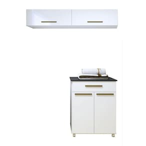 Lavanderia Modulada Magé 2 Arm Aéreos E Balcão Kaiki Móveis Branco Lavanderia Modulada 2 Armarios Aereo e Balcao Mage Renove seu ambiente com nosso conjunto de moveis para area de servico! E a combinacao perfeita de estilo e funcionalidade, oferecendo amplo espaco para organizar seus produtos de limpeza e utensilios. Os armarios aereos otimizam o espaco vertical, enquanto o balcao proporciona uma superficie pratica para trabalho e armazenamento adicional. Fabricados com materiais de alta qualidade, garantem durabilidade e resistencia. Transforme sua area de servico em um ambiente mais organizado e agradavel.