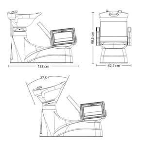 Lavatório square marca Dompel, para uso profissional. Mordeno e elegante, o lavatório possui cuba em louça reclinável com registro monocomando. Também acompanha mangueiras em aço cromado flexíveis e protetor de pescoço para dar mais conforto ao cliente.